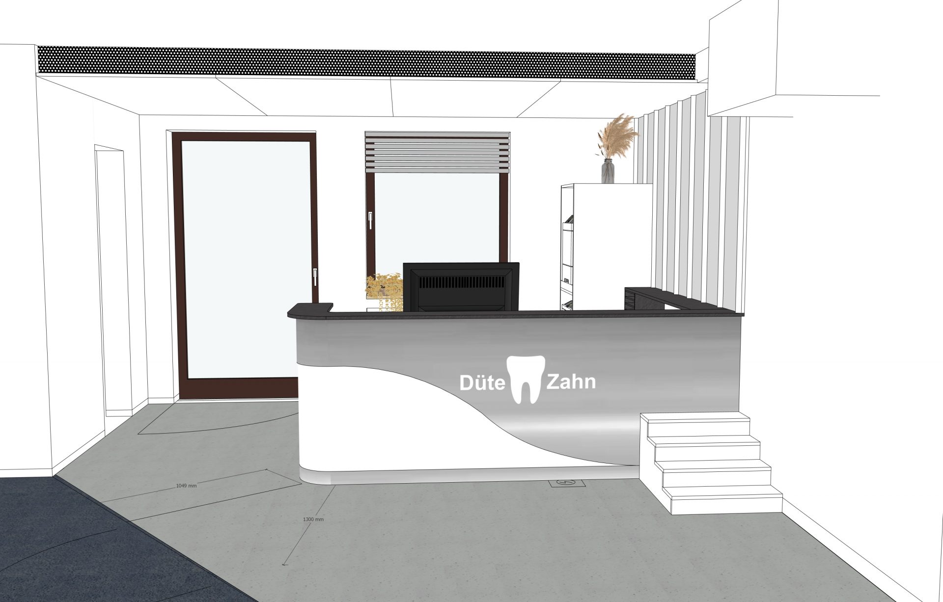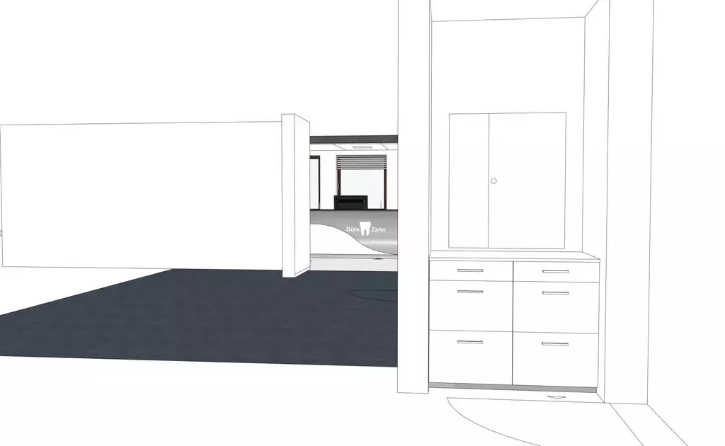 Der neu gestaltete Empfangsbereich unseres Referenzprojekts überzeugt durch eine einladende Atmosphäre und das eindrucksvoll beleuchtete Düte-Zahn-Logo hinter transluzentem Glas. Die elegante Theke mit gebürsteter Edelstahl-Front und die neue Schallschutz-Trennwand zum Warteraum sorgen nicht nur für ein modernes Ambiente, sondern auch für Privatsphäre. Zudem wurde der Röntgenraum individuell angepasst um die Arbeitsabläufe zu optimieren. Während abschließbare Staumöglichkeiten den Datenschutz sicherstellen.