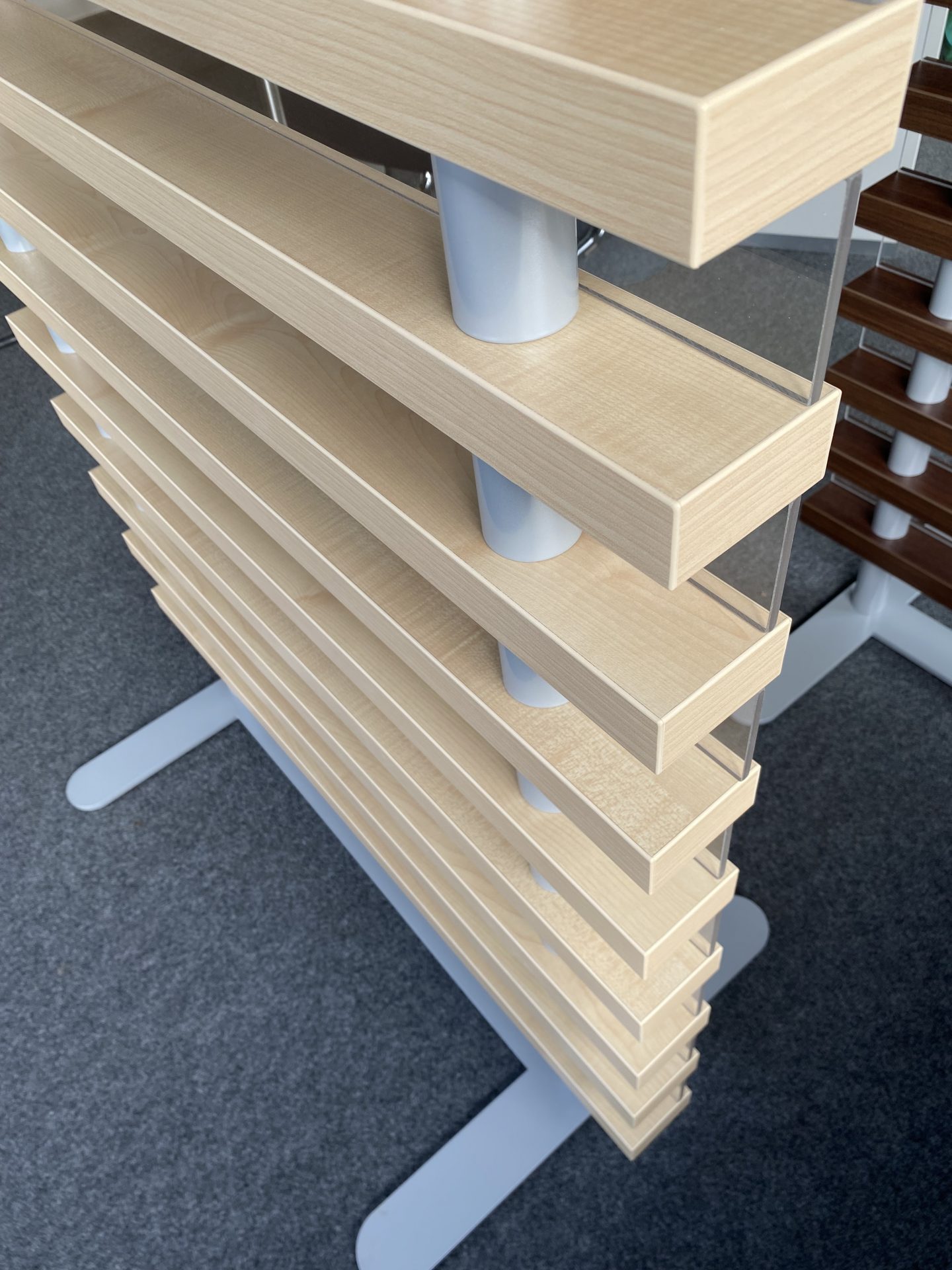 Ob offen oder geschlossen – unsere freistehenden Lamellenwände passen sich spielend leicht Ihren Bedürfnissen an. Durch die innovative Plexiglaslösung und Ausführungen in verschiedenen Dekoren, bieten wir für jeden Geschmack das passende Design.